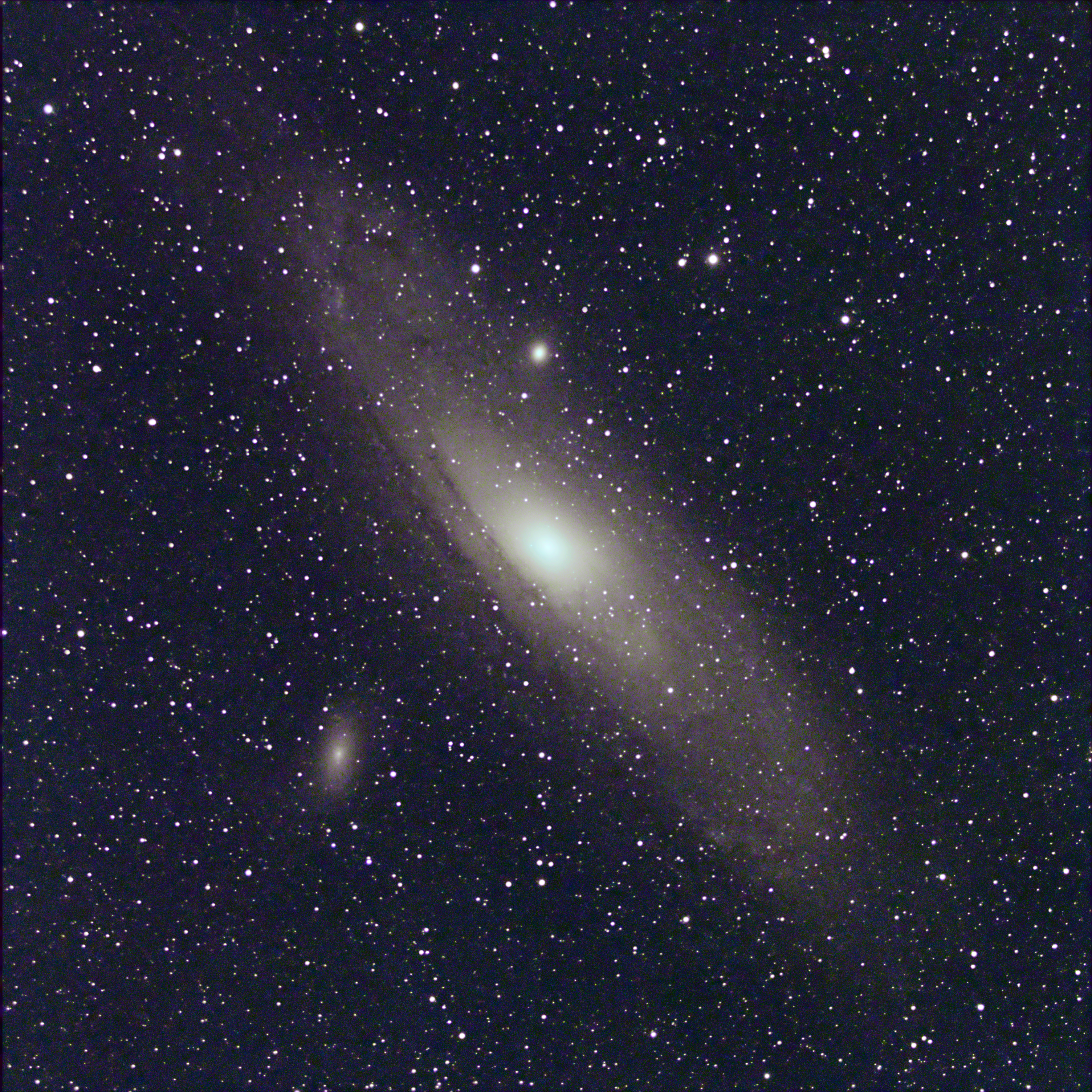 Alas, the clouds were not playing ball this night and pretty much had me packing in after about an hour. I managed to get some test shots of Andromeda (M31) before I started to guide and it came out alright for about 5 minutes of processing.